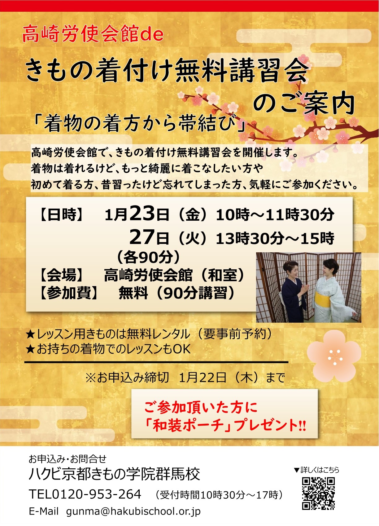 高崎市で着物教室様よりポスティングのご依頼をいただきました!きもの着付無料講座会の告知